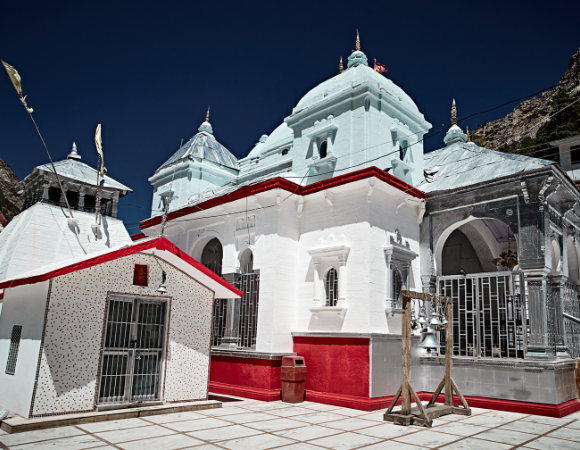 Yamunotri temple:- Yamunotri Temple is situated in the Garhwal Himalayas at an altitude of 10,800feet. It islocated in the Uttarkashi district of The temple is dedicated to Goddess Yamuna. Amar Singh Thapa built this temple. However, it got destroyed and was rebuilt in the 19th Century. It stands amidst beautiful mountain peaks and the sacred waters of the Yamuna River. The temple has a black marble idol of Goddess Yamuna.